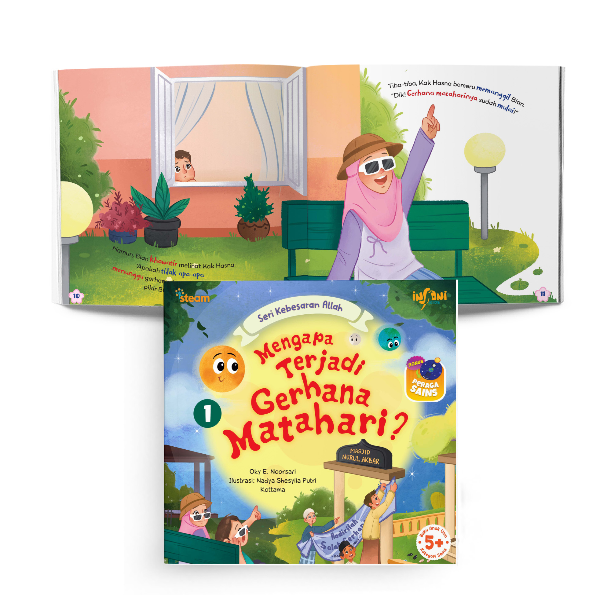 Di masjid ada pengumuman shalat gerhana. Bian penasaran apa itu gerhana? Bagaimana warna langit saat gerhana, ya? Apakah Bian berani keluar rumah saat gerhana?